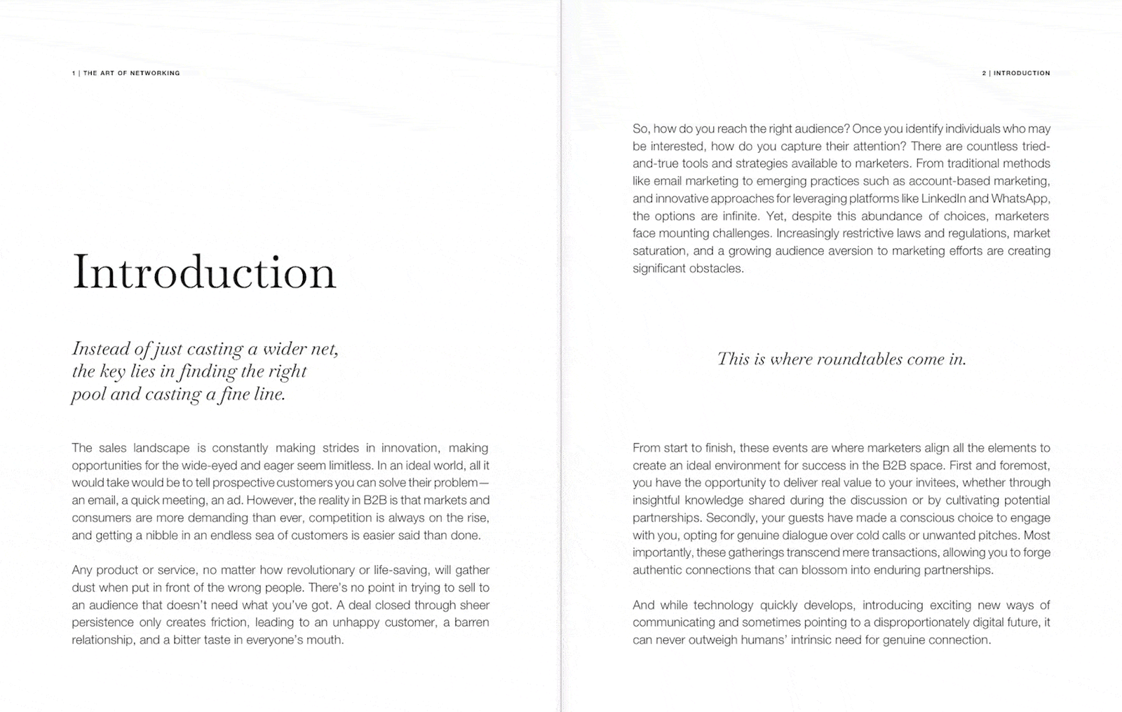 Built on 10 years of real-world expertise, The Art of Networking reveals everything we’ve learned about designing and hosting high-impact executive roundtables. From crafting the perfect guest list to sparking meaningful conversations, we’ve distilled our best practices, hard-won lessons, and insider tips into one practical, accessible guide.
